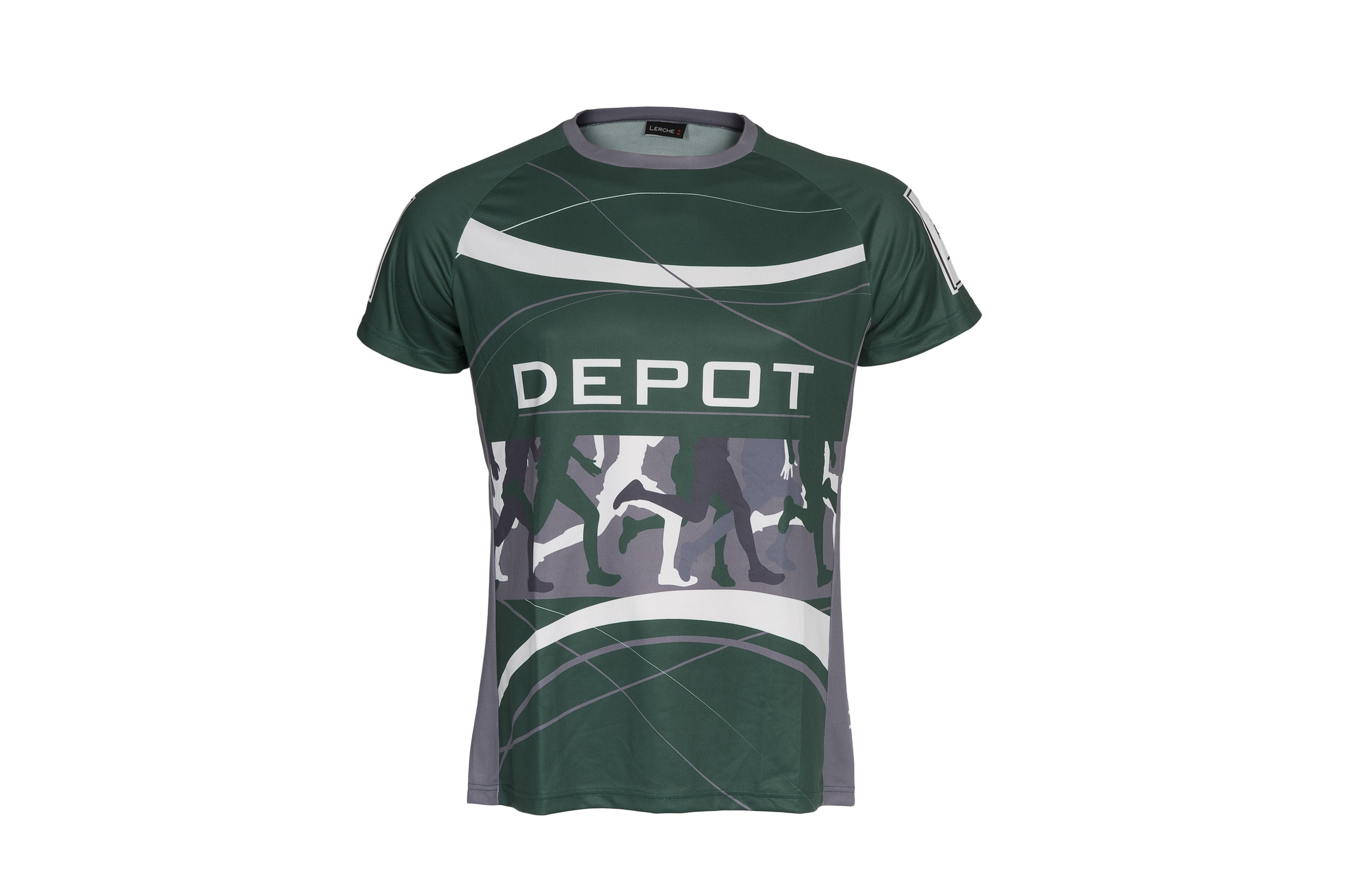 Nicht nur ein Logo oder Claim auf Vorder- oder Rückseite, sondern Ihr eigenes Design, auf dem kompletten Laufshirt - dies ermöglicht der vollflächige Sublimationsdruck wie bei diesem Shirt für Depot.